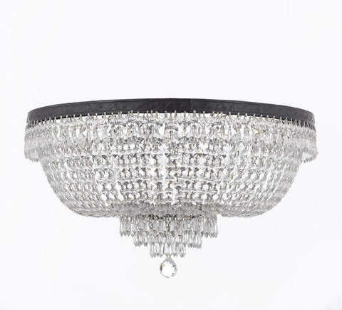 French Empire Crystal Flush Chandelier Chandeliers Lighting H21" X W30" With Dark Antique Finish! Good for Dining Room, Foyer, Entryway, Family Room and More! This beautiful Chandelier is trimmed with Empress Crystal(TM) 100% CRYSTAL SEMI FLUSH CHANDELIER, this chandelier is characteristic of the grand chandeliers which decorated the finest Chateaux and Palaces across Europe and reflects a time of class and elegance which is sure to lend a special atmosphere in every home. SIZE H21" X W30" 14 LIGHTS Please note this item requires assembly.