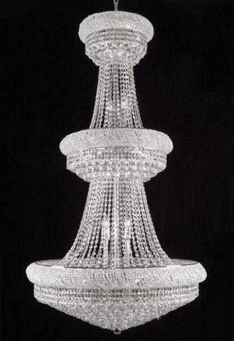Set of 3 - This beautiful Chandelier is trimmed with Empress Crystal(TM) 100% CRYSTAL CHANDELIER, this Empire chandelier is characteristic of the grand chandeliers which decorated the finest Chateaux and Palaces across Europe and reflects a time of class and elegance which is sure to lend a special atmosphere in every home. This item comes with 18 inches of chain.Assembly Required SIZE:H 66" W 36" 32 LIGHTS.