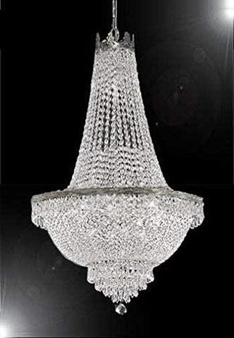 Set of 4 - French Empire Crystal Silver Chandelier Lighting - Great for The Dining Room, Foyer, Entry Way, Living Room - H50" X W24" - 4EA A500-C7/CS/870/9