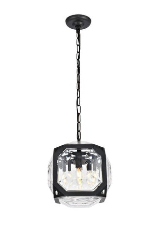 The Juno pendant in a flat black finish displays geometric excellence and a wonderous style. The light is encapsulated with a cube-like shade that is both open and closed at the same time as faceted clear bulbous glass covers the openings and minimally obscures the light that shines through. Add contemporary style to your space and amaze your guests with this pendant.