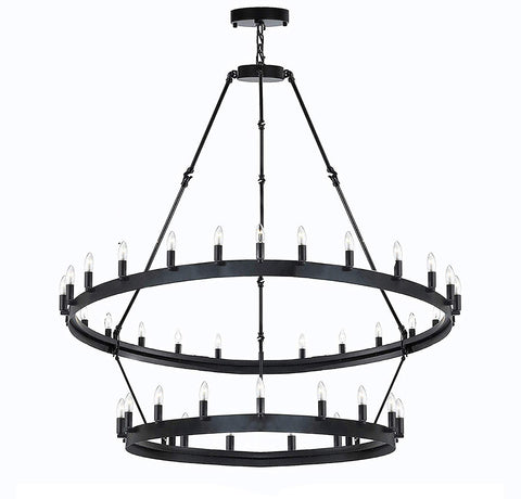 Set of 2 - Wrought Iron Vintage Barn Metal Castile Two Tier Chandelier Chandeliers Industrial Loft Rustic Lighting W 38" H 50"