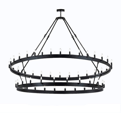 Set of 2 - Wrought Iron Vintage Barn Metal Castile Two Tier Chandelier Chandeliers Industrial Loft Rustic Lighting W 70" H 66" - 2EA G7-3428/66